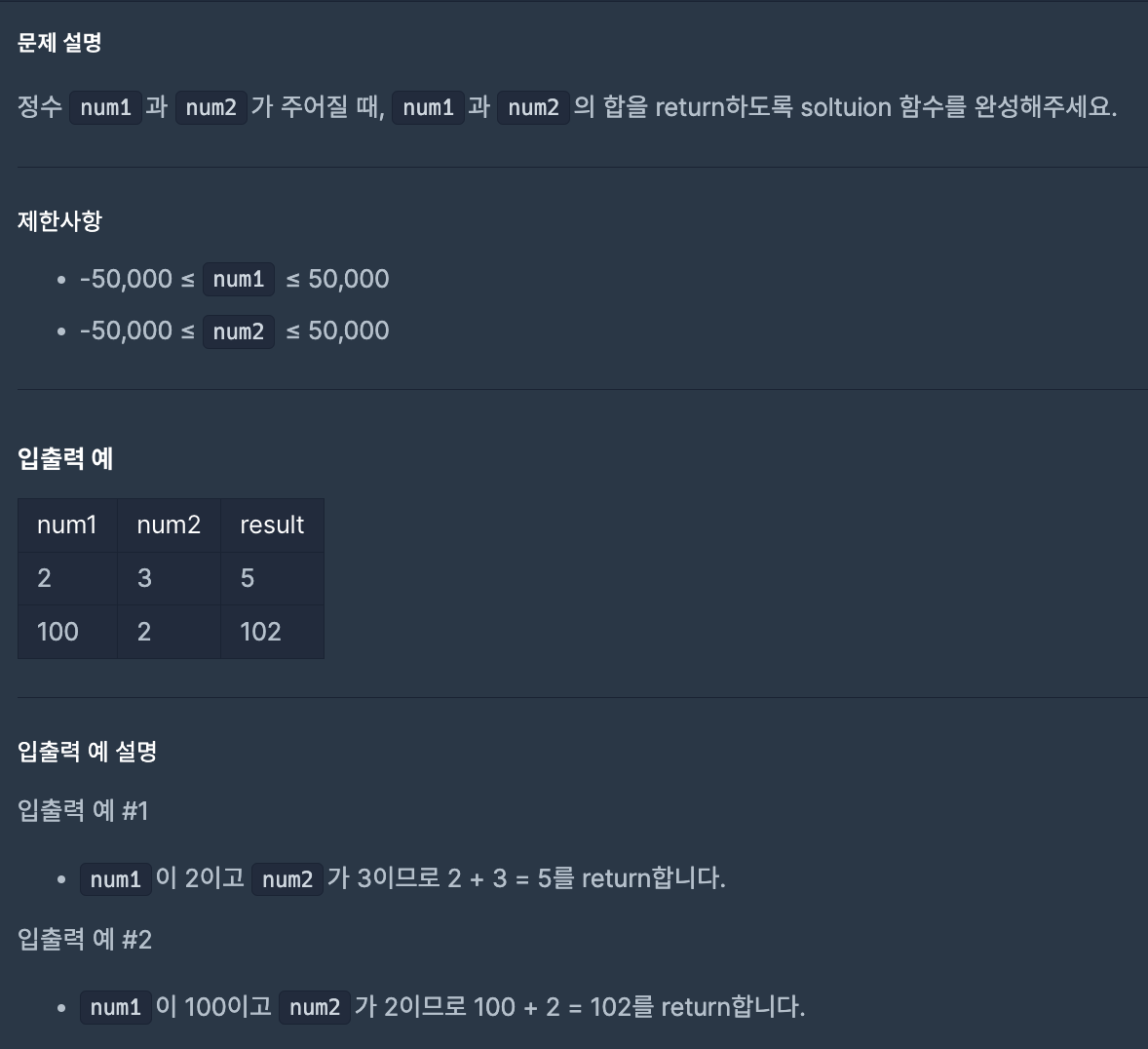 programmers_두 수의 합 공유 링크 만들기 Facebook X Pinterest 이메일 기타 앱 10월 10, 2023 programmers # Level 0 # Java # 코딩테스트 입문 연습문제) 두 수의 합 (23.10.10) 문제 : https://school.programmers.co.kr/learn/courses/30/lessons/120802 0단계 부터 해볼까나..? 공유 링크 만들기 Facebook X Pinterest 이메일 기타 앱 댓글